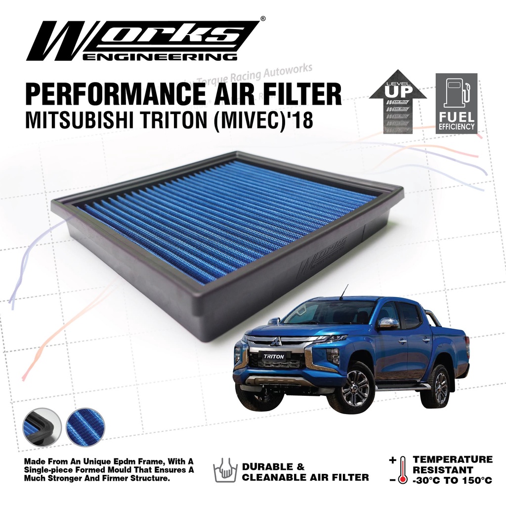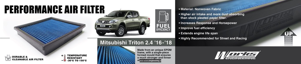 View more about WORKS ENGINEERING Washable Replacement High Flow Drop In Filter For Mitsubishi Triton Mivec / Pajero '16-'18 / Lexus NX2 on main site