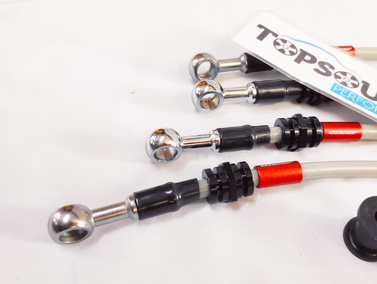 AROSPEED Steel Braided Brake Hose is corrosion and flame resistant stainless steel. It also offers a anti-ware protection jacket against abrasion. AROSPEED Steel Braided Brake Hoses will not expand under high pressure (volumetric expansion) and temperature, this allows a consistent line pressure giving a firmer and more efficient brake system operation, eliminating that ‘spongy’ pedal feel. This more efficient brake operation will lead to a reduced braking distance during a panic (hard) stop.