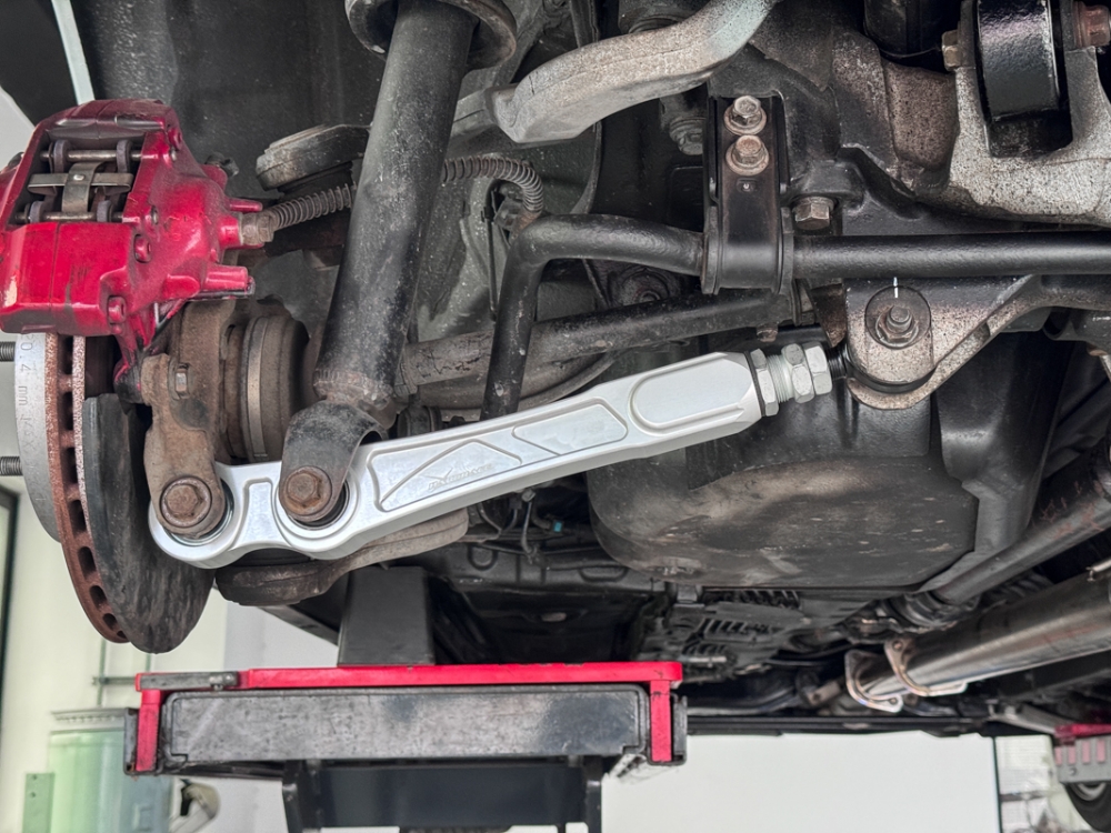 The camber kit allows fine adjustments to the rear end camber setting of the vehicle. It can either help maximize wheel contact patch to improve cornering grip or get your car back to original alignment specs after lowering to prevent uneven tyre wear. The arms are made of anodized CNC billet aluminum alloys to offer highest durability and strength but remain lightweight. The premium quality pillow ball bearings equipped also provide much more precise and solid handling response over the factory components.