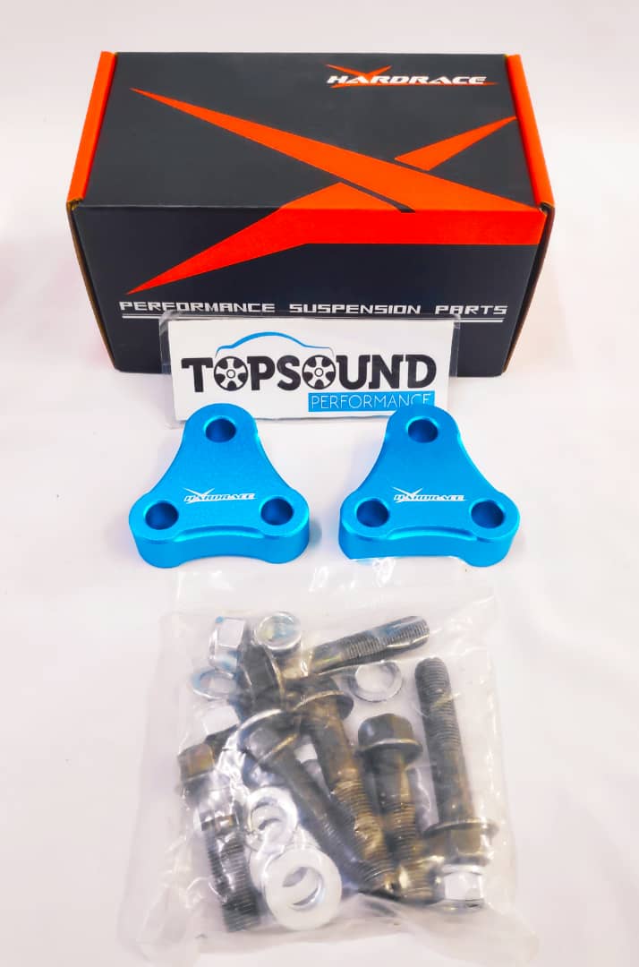 By installing the HARDRACE Roll-Center Adjusting spacer, it will correct the suspension geometry of a lowered car, putting the control arms back closer to its original position, resulting in increased steering response and stability while eliminating bump steer