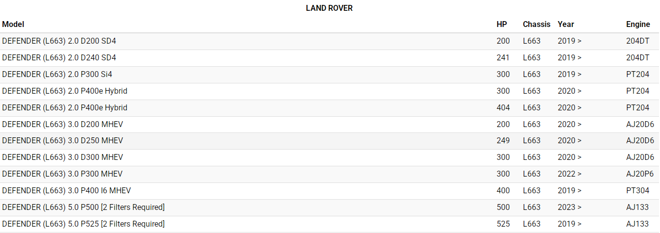 BMC AIR FILTER (FB01111) FOR LAND ROVER DEFENDER L663 2.0 3.0 5.0 (1 OR 2 PCS REQUIRED)