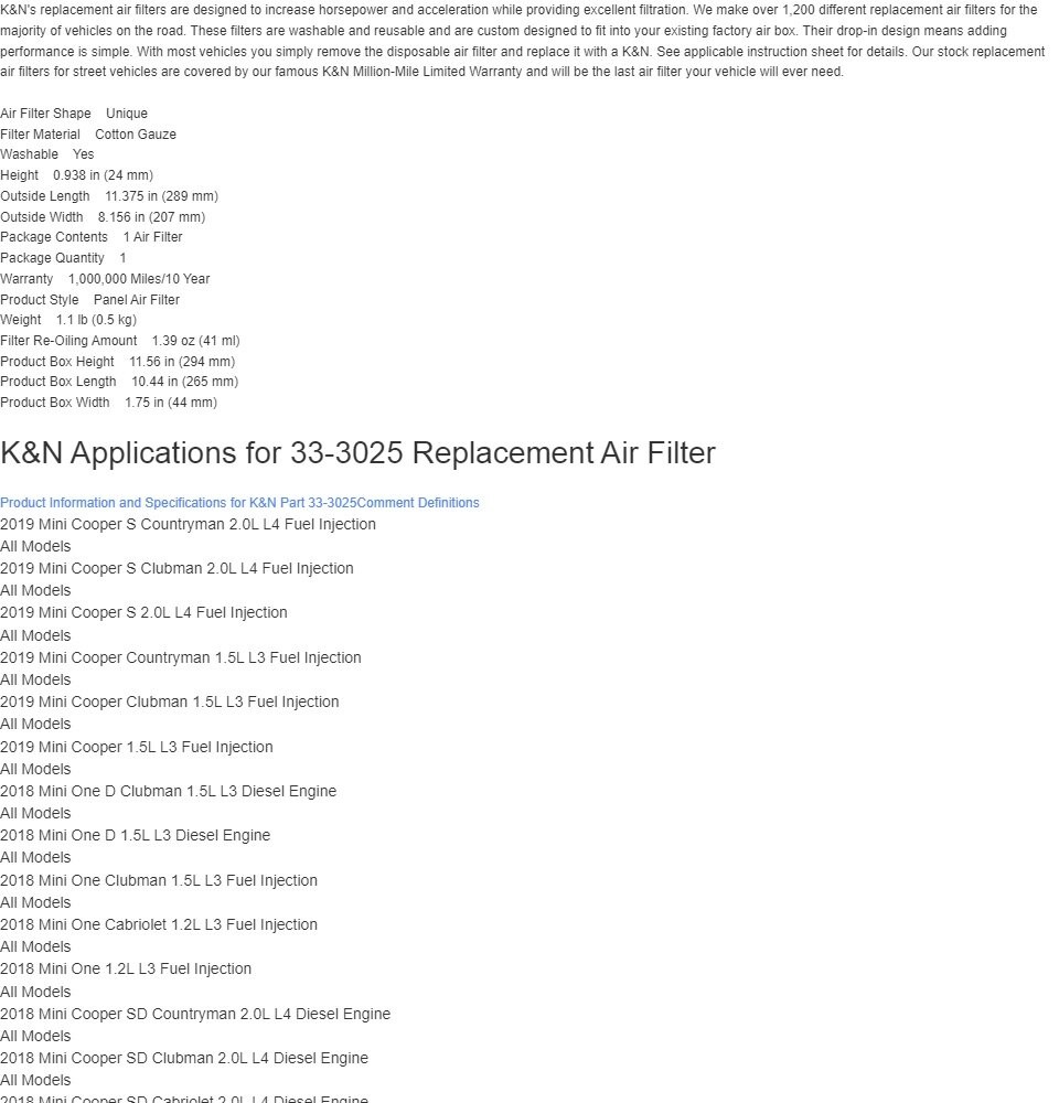 View more about K&N Performance Washable Replacement Air Filter MINI COOPER / Clubman / Countryman 2014-2018 on main site