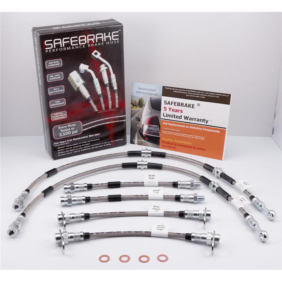 SAFEBRAKE near-elimination of expansion, ensures maximum hydraulic-pressure goes to the brake calipers during heavy braking. This results in much improved brake performance with maximum effectiveness in comparison to standard rubber brake hose which expands under higher pressure.